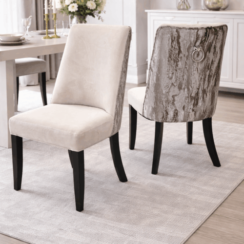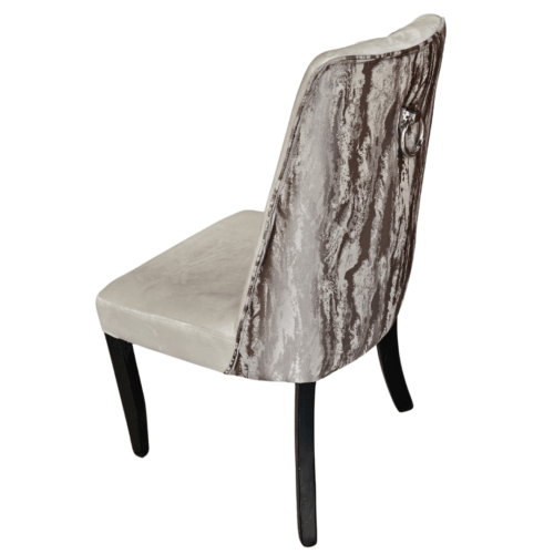 Featuring a sleek marble-finish tabletop and a sculpted fluted base, this dining set is paired with soft upholstered chairs and bold black legs for a refined, contemporary look—perfect for elegant everyday dining.